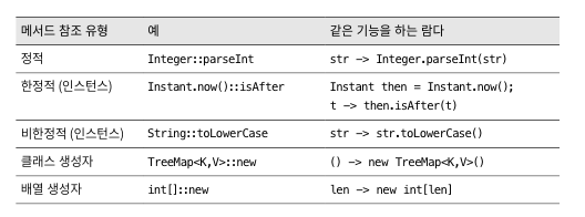 - 람다로 작성할 코드를 새로운 메서드에 담은 다음, 람다 대신 그 메서드 참조를 사용하는 방식으로 하면 메서드 참조에는 기능이 잘 들어내는 이름을 지어줄 수 있고 친절한 설명을 문서로 남길수 도 있다.