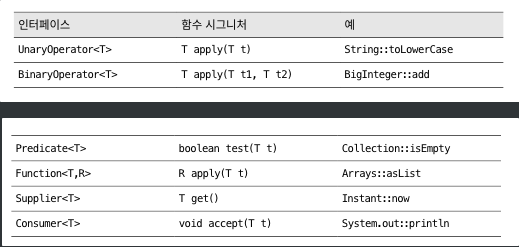 - 필요한 용도 맞는 게 있다면, 직접 함수형 인터페이스를 구현하지 말고 표준 함수형 인터페이스를 활용하자
