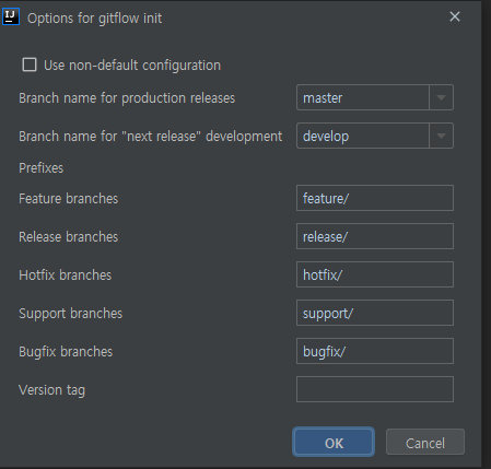git flow init을 하면 기본적으로 생성하는 브런치가 있습니다.