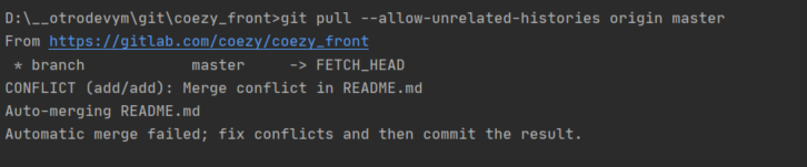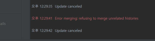 그리고 git repo를 생성하고 pull을 했는데 에러가 발생했습니다.