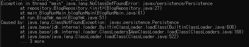 gradle로 build를 하는 과정에서 javax.persostence.Persistence가 있는데 생기는 에러입니다.