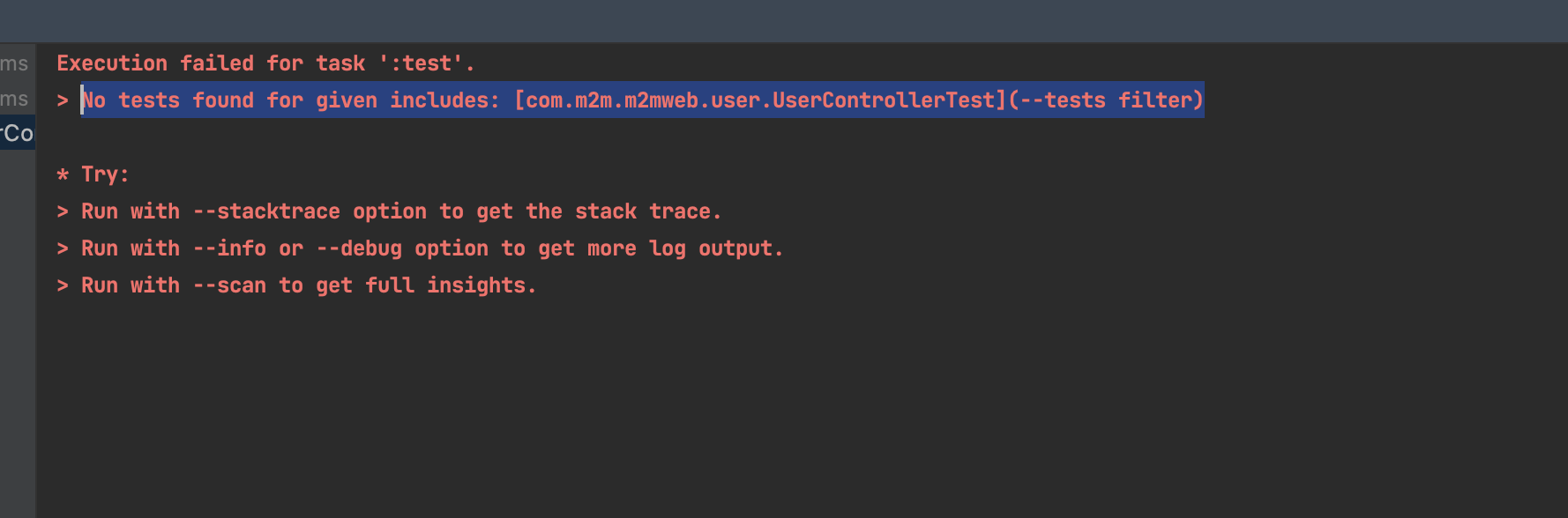 개발(합니다)/시나브로(이슈) [Junit5] No tests found for given includes: [com.m2m.m2mweb.user.UserControllerTest](--tests filter) otrodevym 2022. 11. 10. 16:41 반응형 상황 spring(2.7.5) 프로젝트를 새로 생성하고 @SpringBootTest를 하려고 했는데 에러가 발생했습니다. 문제 파악 Junit 버전에 맞지 않아서 생기는 이슈입니다. 해결 방법 Junit 버전 확인 import 된 junit이 4버전인지 5버전인지 확인합니다. import org.junit.jupiter.api.Test; 반응형 공유하기 게시글 관리 미니 블로그 : 메모하는 습관 저작자표시 비영리 변경금지 (새창열림) '개발(합니다) > 시나브로(이슈)' 카테고리의 다른 글 [Flutter-Xcode] Xcode가 빌드가 안되고 .pub-cache 관련 에러가 발생하는 경우 (0) 2022.01.04 [Flutter-Xcode] m1에서 xcode 업데이트 하고나서 flutter 에러 나서 안될때 (0) 2021.12.26 [Intellij] Command line to long. Shorten command line for... (0) 2021.12.07 [Flutter-Firebase] Unhandled Exception: PlatformException(sign_in_failed, com.google.android.gms.common.api.ApiException: 10: , null, null) (0) 2021.12.02 [Nginx] Ngnix pid 누락으로 인한 문제 해결 방법 (0) 2021.11.29 '개발(합니다)/시나브로(이슈)' Related Articles [Flutter-Xcode] Xcode가 빌드가 안되고 .pub-cache 관련 에러가 발생하는 경우 [Flutter-Xcode] m1에서 xcode 업데이트 하고나서 flutter 에러 나서 안될때 [Intellij] Command line to long. Shorten command line for... [Flutter-Firebase] Unhandled Exception: PlatformException(sign_in_failed, com.google.android.gms.common.api.ApiException: 10: , null, null)