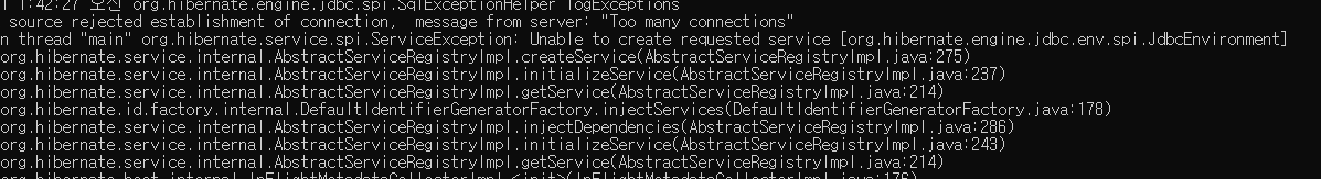Mysql에서 지정 된 DB Connection Pool 가능 차서 연결을 하지 못하는 상황입니다.
