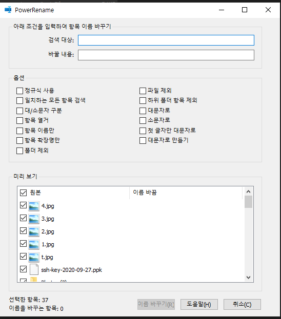 바꾸고자 하는 파일들을 선택 후 오른쪽 클릭하고 PowerRename을 실행합니다.